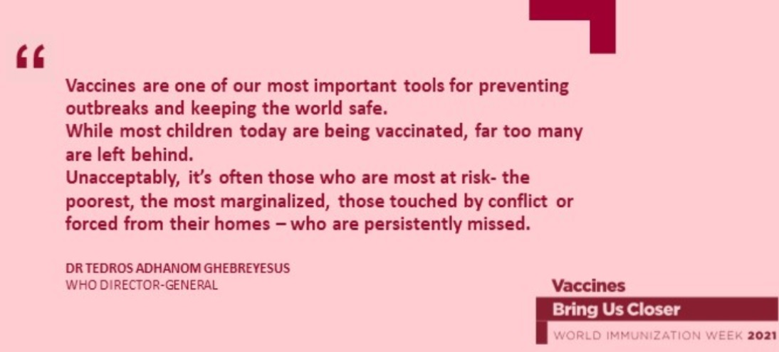 With all eyes on vaccines, World Immunization Week 2021 offers an unprecedented opportunity to build public trust in the value of all vaccines and help build long-term support for immunization.