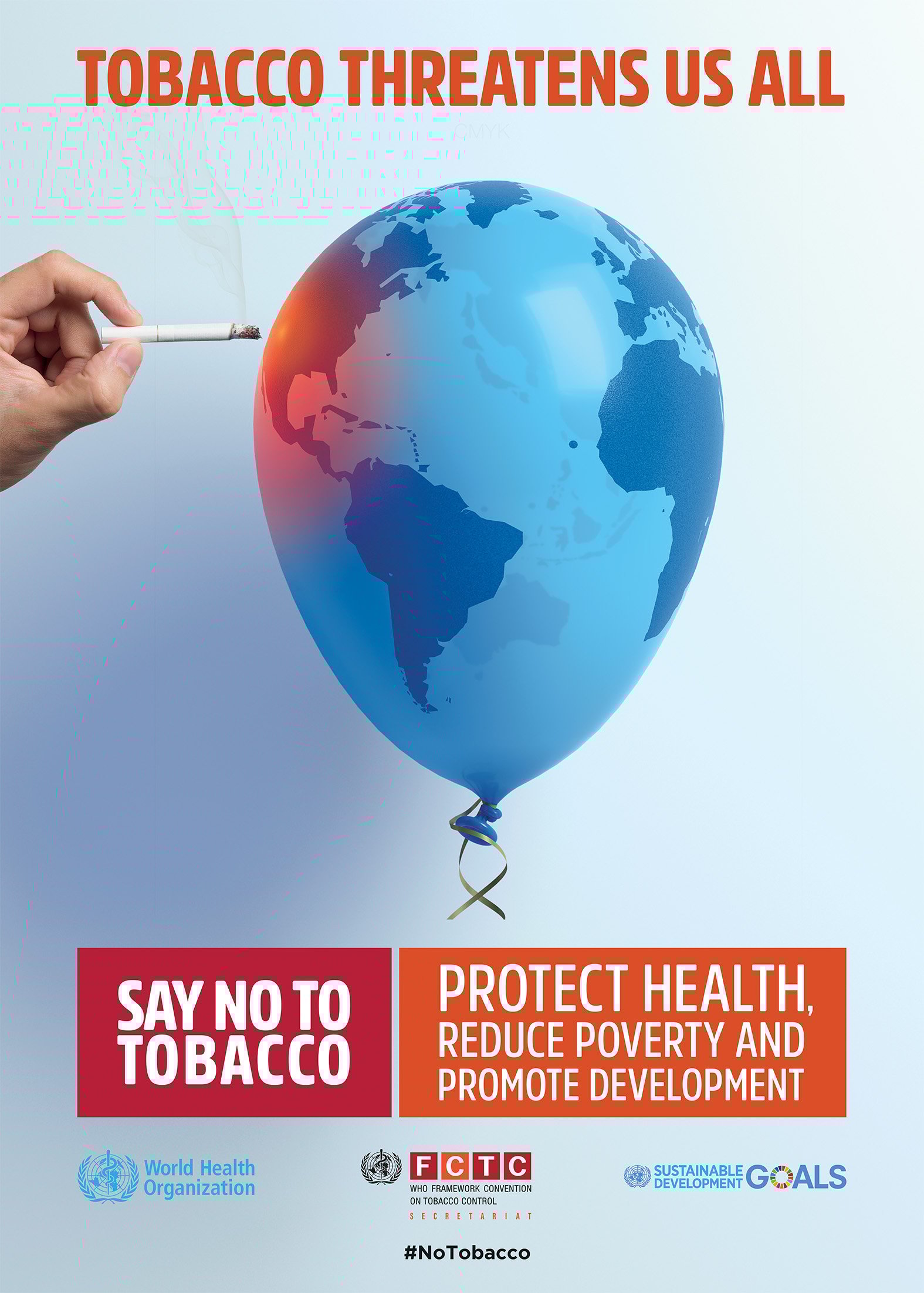 The theme for World No Tobacco Day 2017 is "Tobacco – a threat to development."