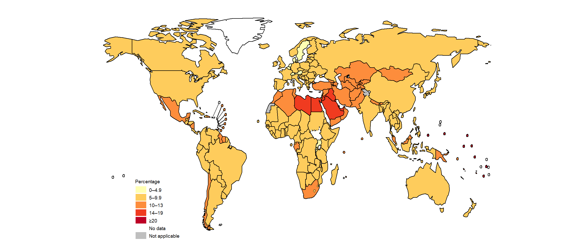 Fig. 1 The age-adjusted prevalence of diabetes, latest available dataa