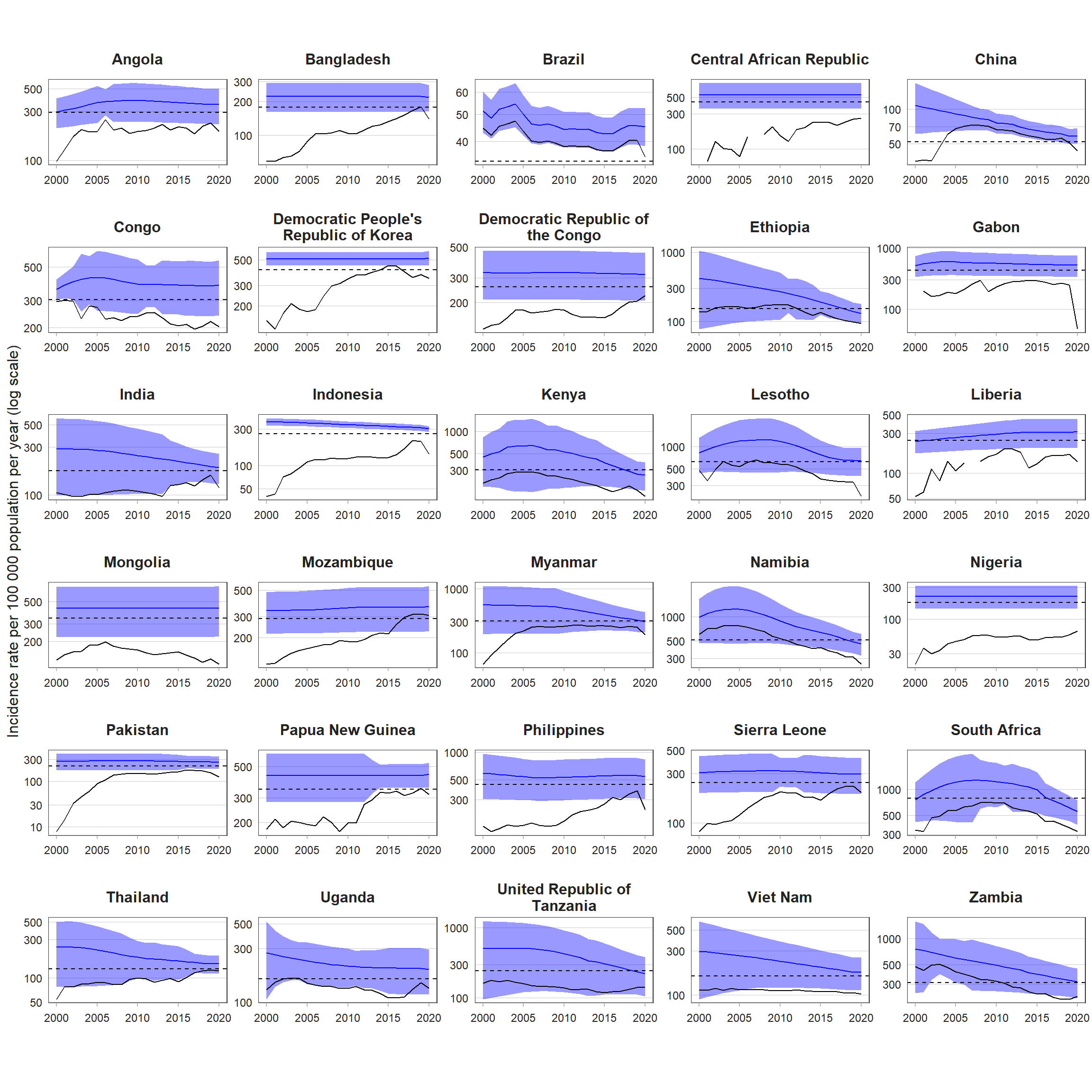 Further country-specific details about estimates of the number of incident TB cases and TB incidence rates are available in the Global tuberculosis report app and online country profiles.