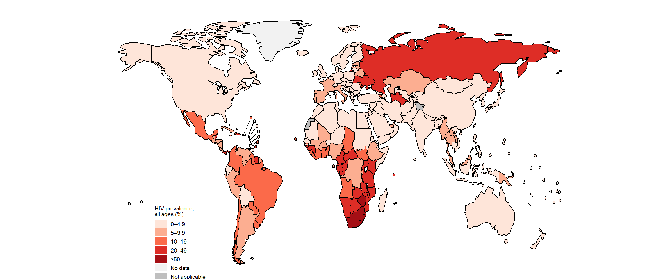 Among all TB cases, 8.0% were among people living with HIV (Table 2.1.1). The proportion of TB cases coinfected with HIV was highest in countries in the WHO African Region, exceeding 50% in parts of southern Africa (Fig. 2.1.6).