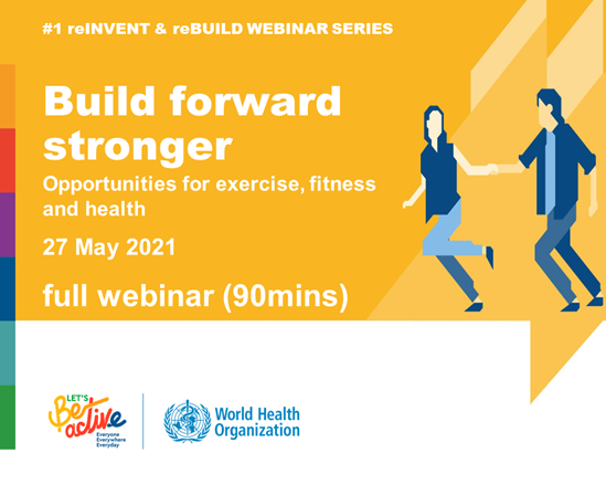 This webinar explores the 1) impact of COVID-19 on physical activity, exercise and fitness 2) key trends which influence how to reinvent a stronger system, and 3) communication needed to reach and engage more people to be active.