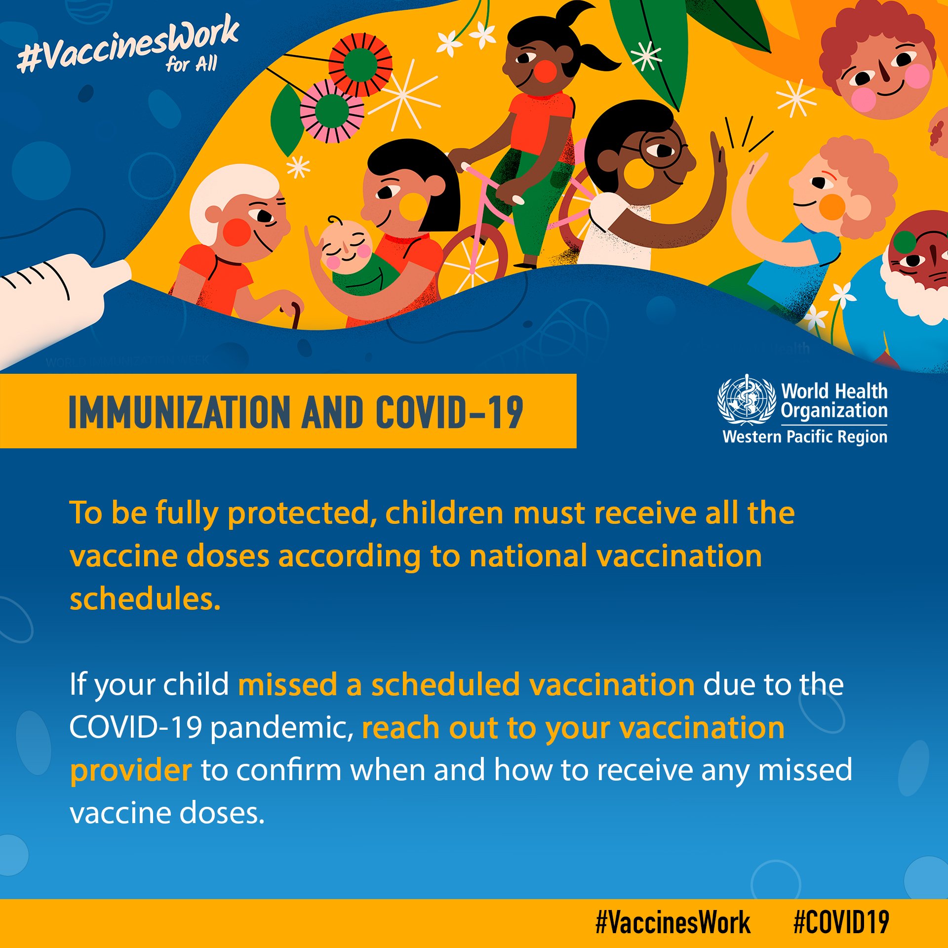 - It is important to complete your vaccination schedule to be fully protected against disease such as polio, measles, hepatitis B, diphtheria. If you have missed vaccination doses due to the COVID-19 pandemic, reach out to your vaccination provider to understand when and how to receive any missed vaccine doses.